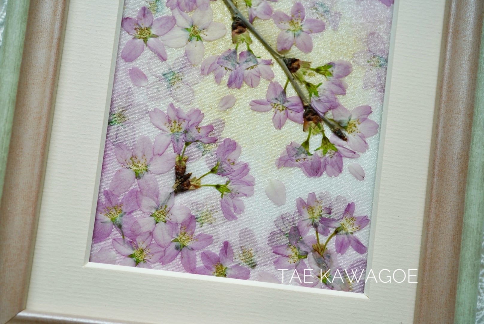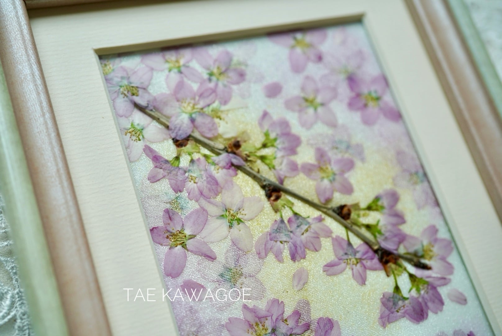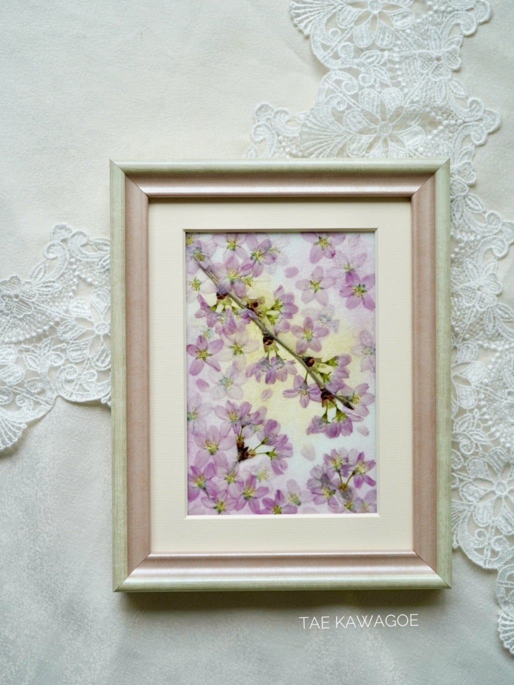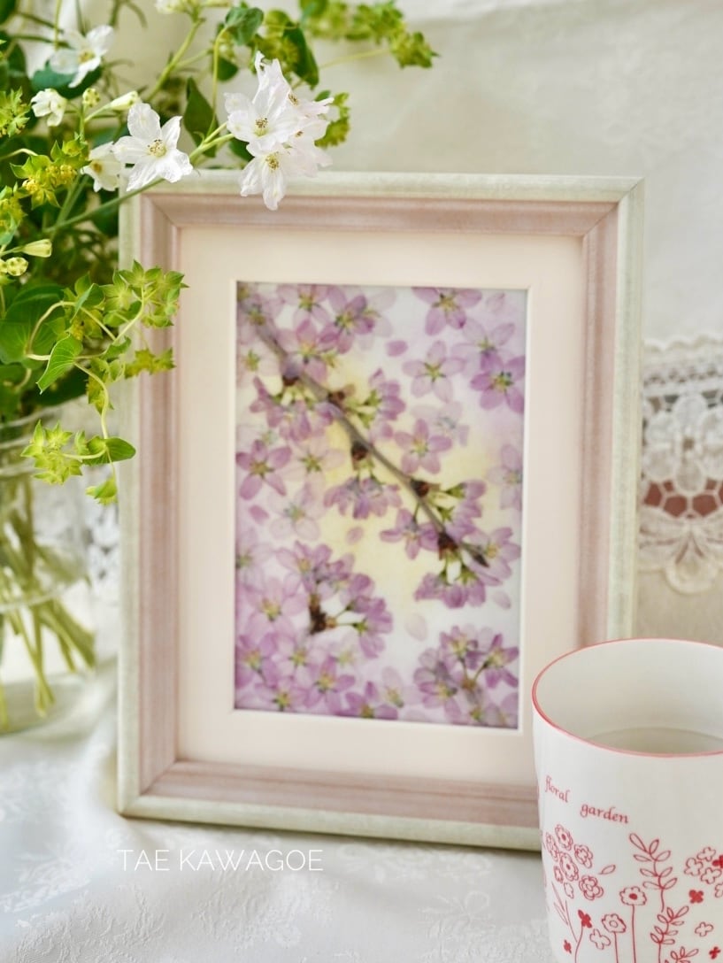 This work is sealed in glass. Pressed flowers have a delicate nature that changes over time when exposed to air and ultraviolet rays. By sealing them in glass and blocking the air, you can enjoy their beautiful colors for a long time. If you open the back panel of the frame, air may flow in. When you receive it, please display it as is, away from direct sunlight.