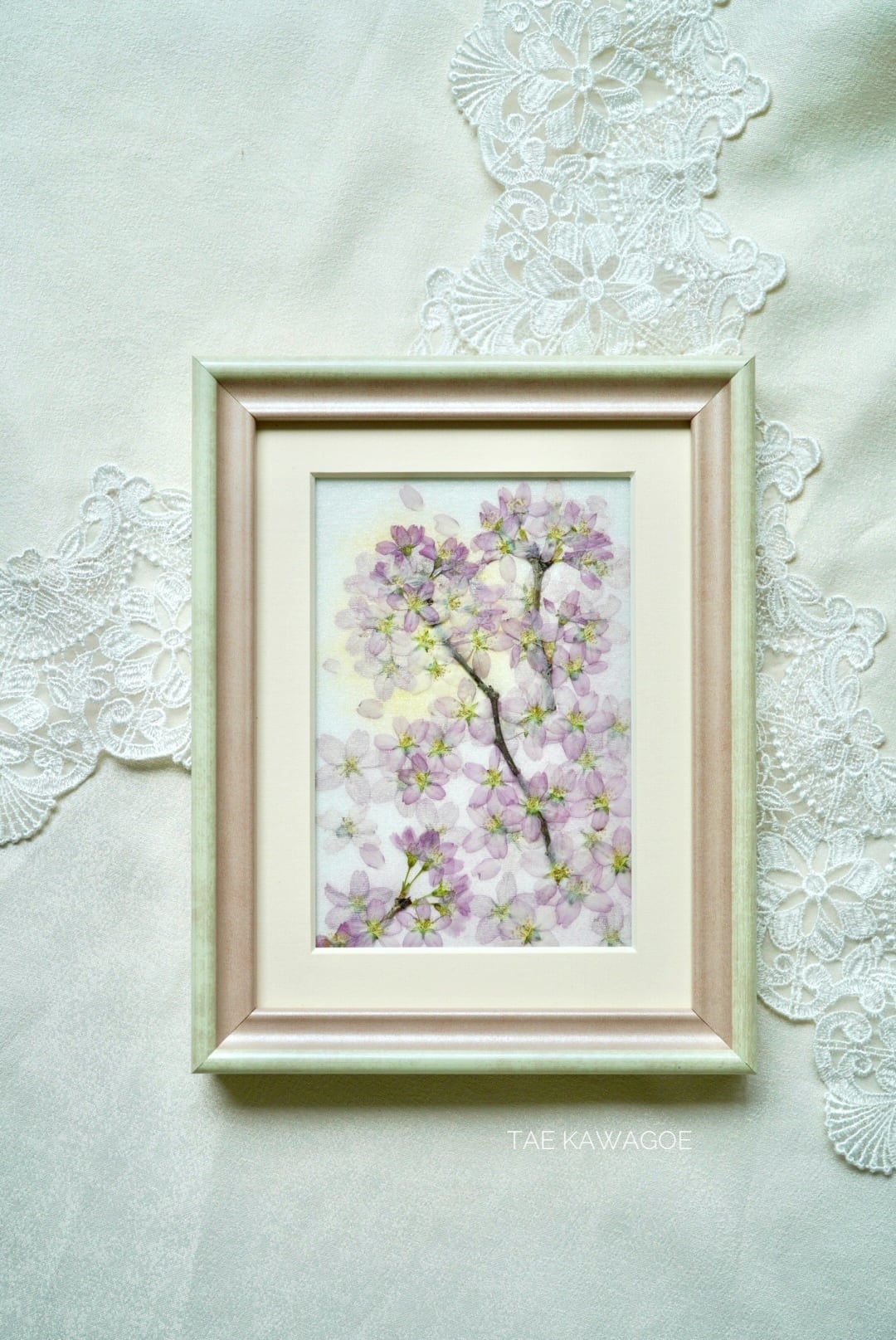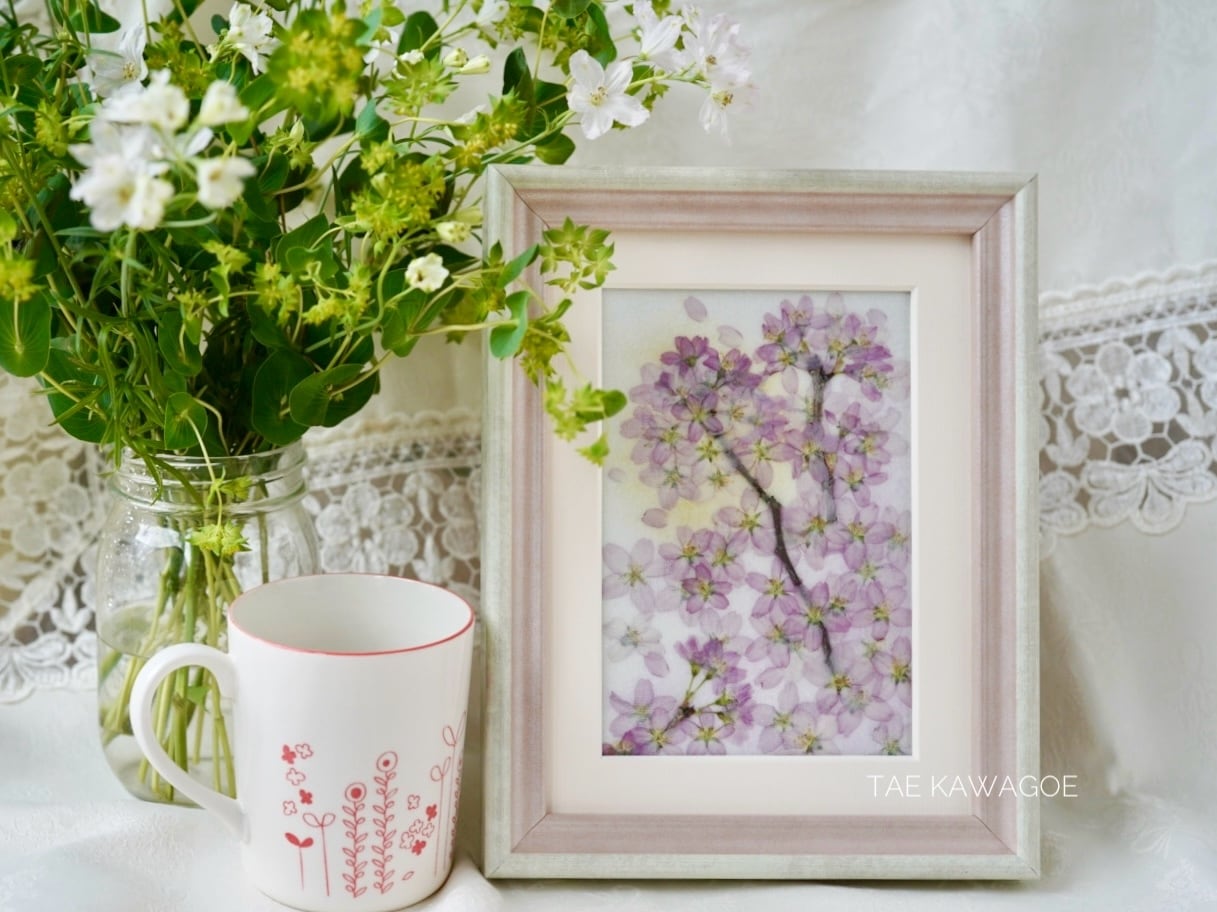 This work is sealed in glass. Pressed flowers have a delicate nature that changes over time when exposed to air and ultraviolet rays. By sealing them in glass and blocking the air, you can enjoy their beautiful colors for a long time. If you open the back panel of the frame, air may flow in. When you receive it, please display it as is, away from direct sunlight.