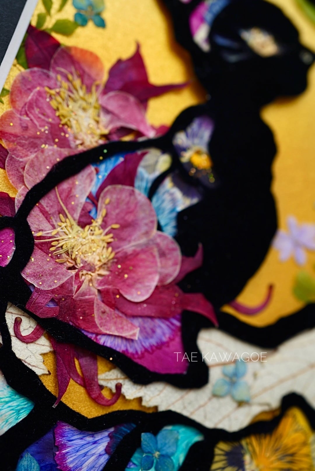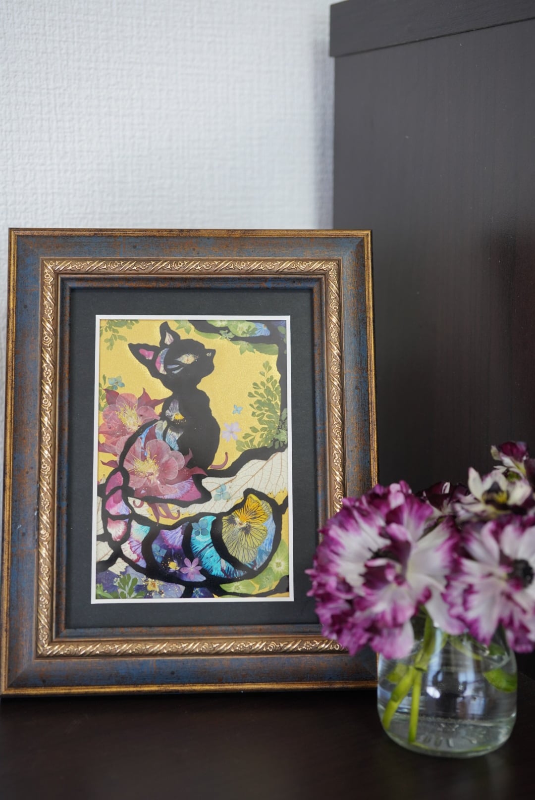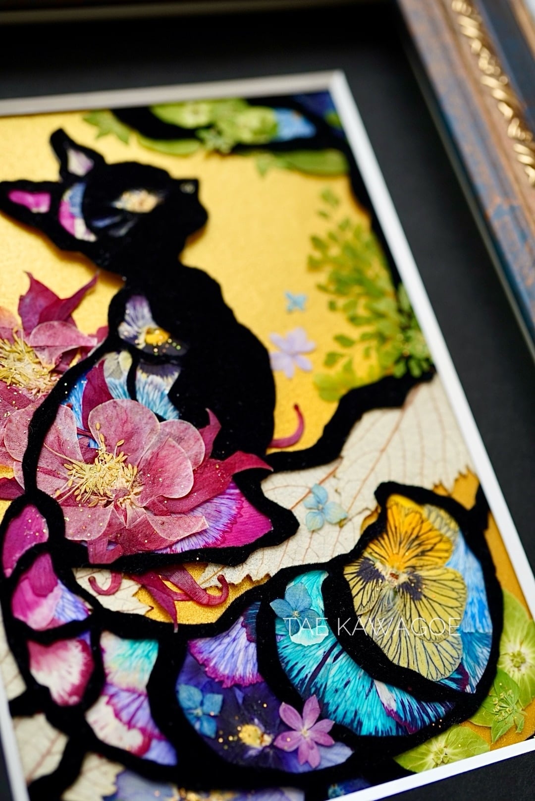 This work is sealed in glass. Pressed flowers are delicate and change over time when exposed to air or ultraviolet light. By sealing them in glass and blocking out the air, you can enjoy their beautiful colors for a long time. If you open the back panel of the frame, air may enter. When you receive it, please display it as it is, away from direct sunlight.